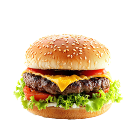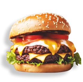 2 Steaks hachés 80gr, 2 fromages, salade, tomates, oignons.