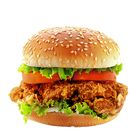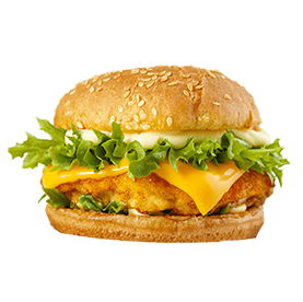 Poulet pané, salade, tomates, oignons, fromage cheddar.